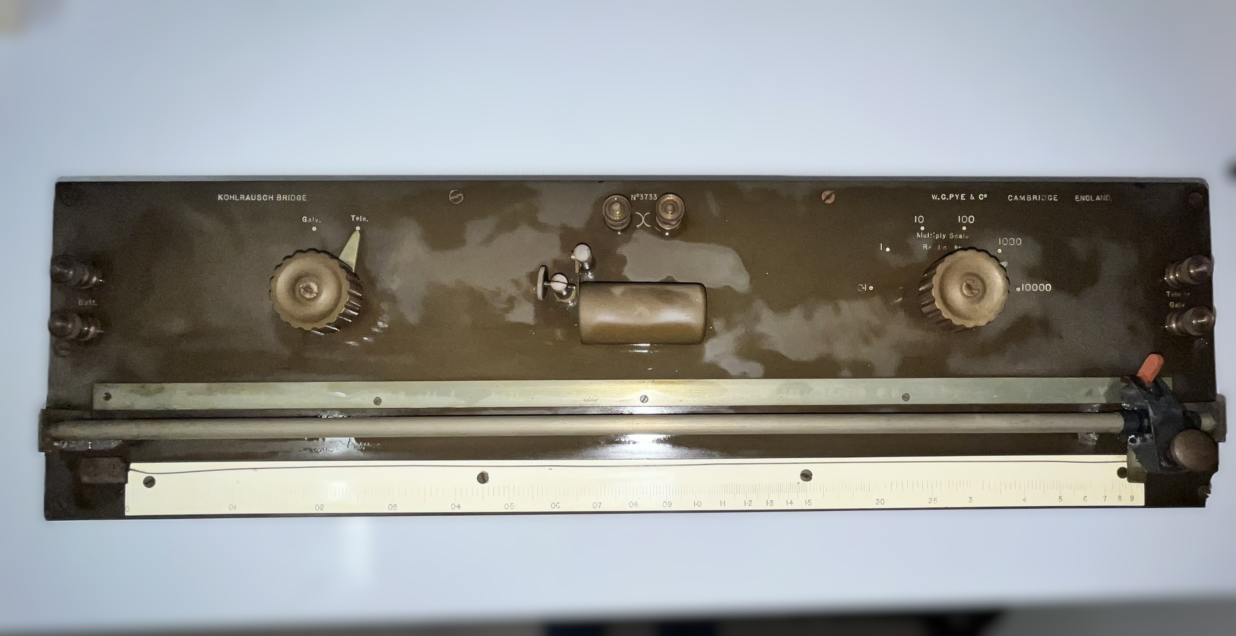 Description: This instrument is a type of Wheatstone bridge used for precise measurements of electrical resistance, particularly in electrolytes. It is commonly used in experiments studying conductivity and resistivity.