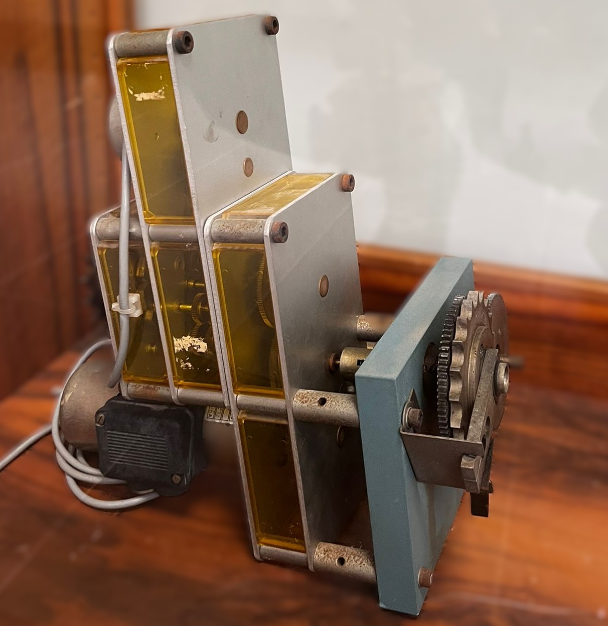 Questo dispositivo è un generatore elettrostatico che usa l'induzione per generare un'enorme differenza di potenziale. Tale strumento è caraterrizzato da due dischi rotanti e una serie di placche metalliche con un motere maccanico per far ruotare il disco. Nello specifico questo dispositivo include anche coperture prottettive per ragioni di sicurezza. La macchina di Wimshurst sono usate per esplorare i fenomeni elettrostatici.