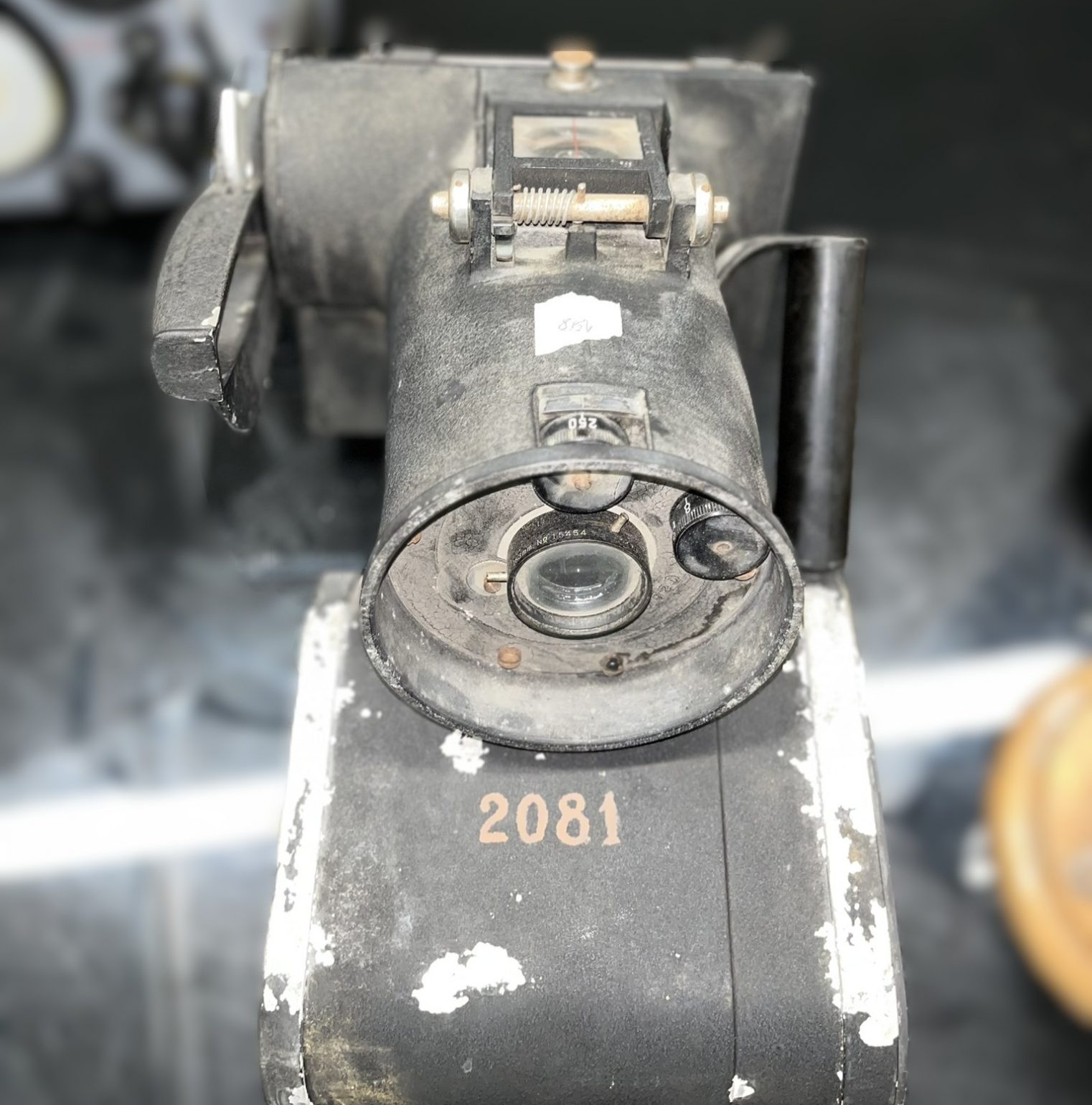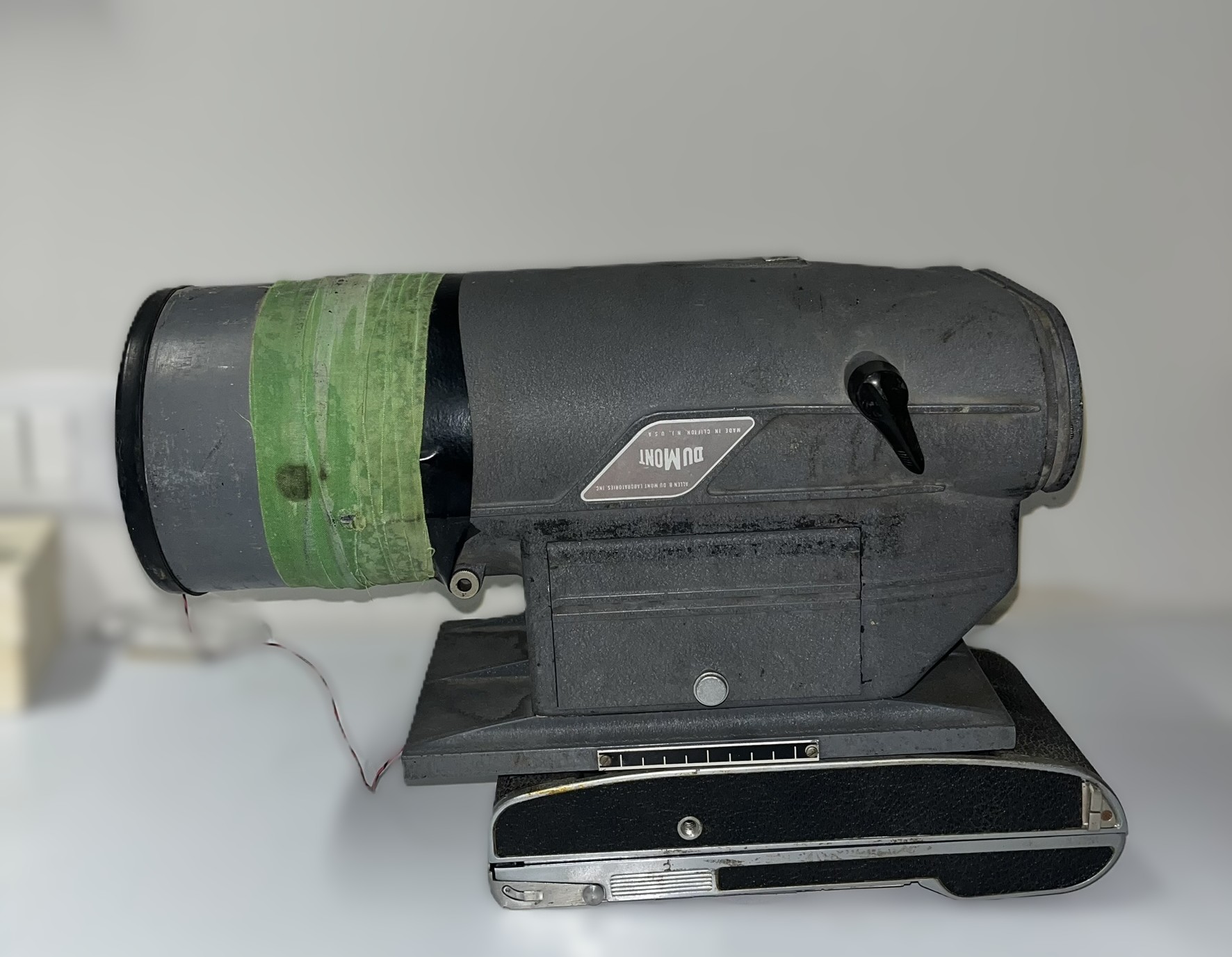 Descrizione: Questa macchina da presa cinematografica vintage è un pezzo storico, perfetto per collezionisti ed appassionati di cinema. Dotata di un corpo robusto con nastro verde intorno all'obiettivo, offre controlli meccanici per la messa a fuoco e l'inquadratura. Ideale per dimostrare l'evoluzione della tecnologia cinematografica.